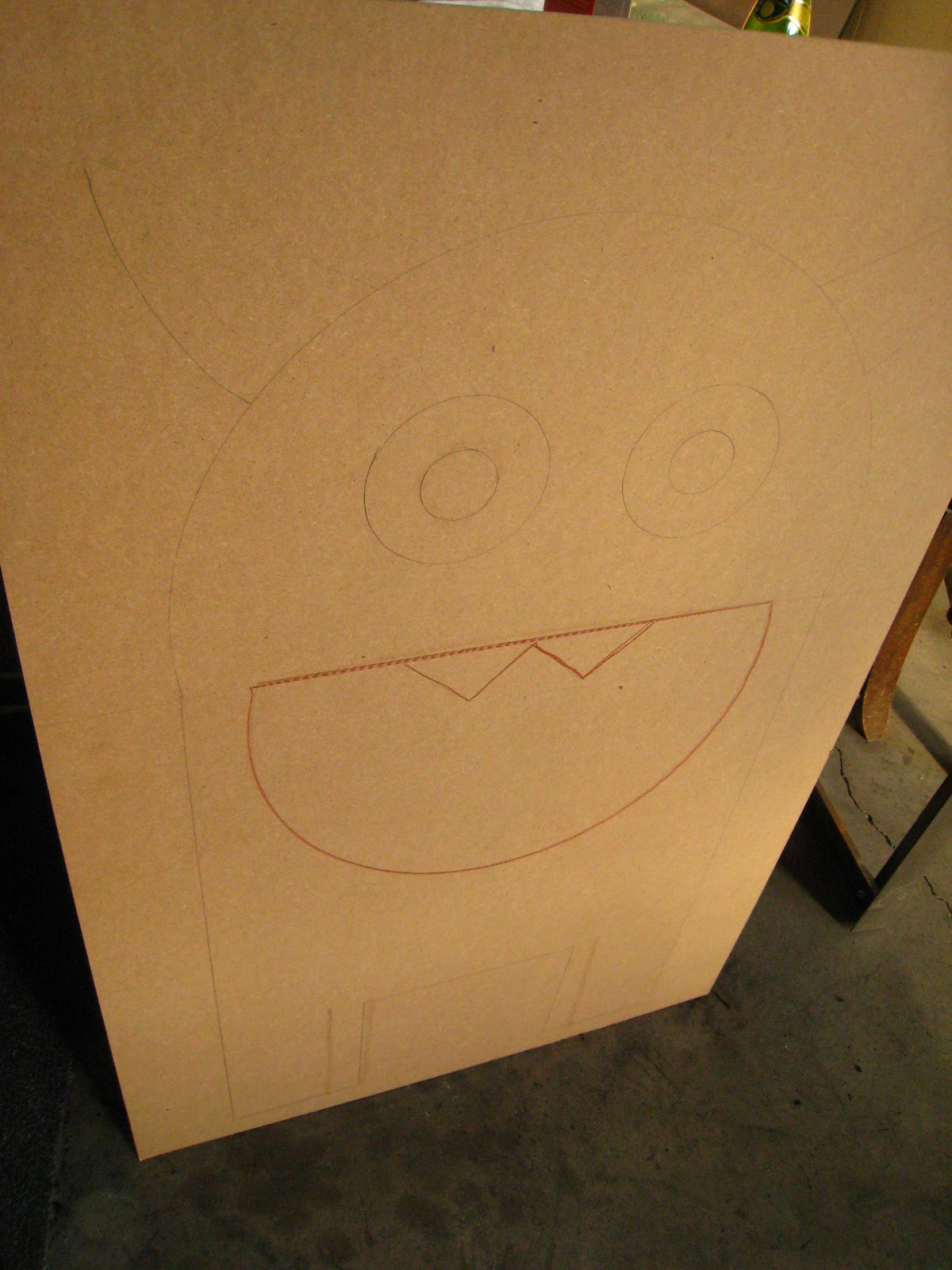 Draw on your monster (or desired image) using random household objects to use as stencils. Draw a darker line of the area you want cut out. Make sure it’s large enough to toss in bean bags but not so large that it makes the game too easy.