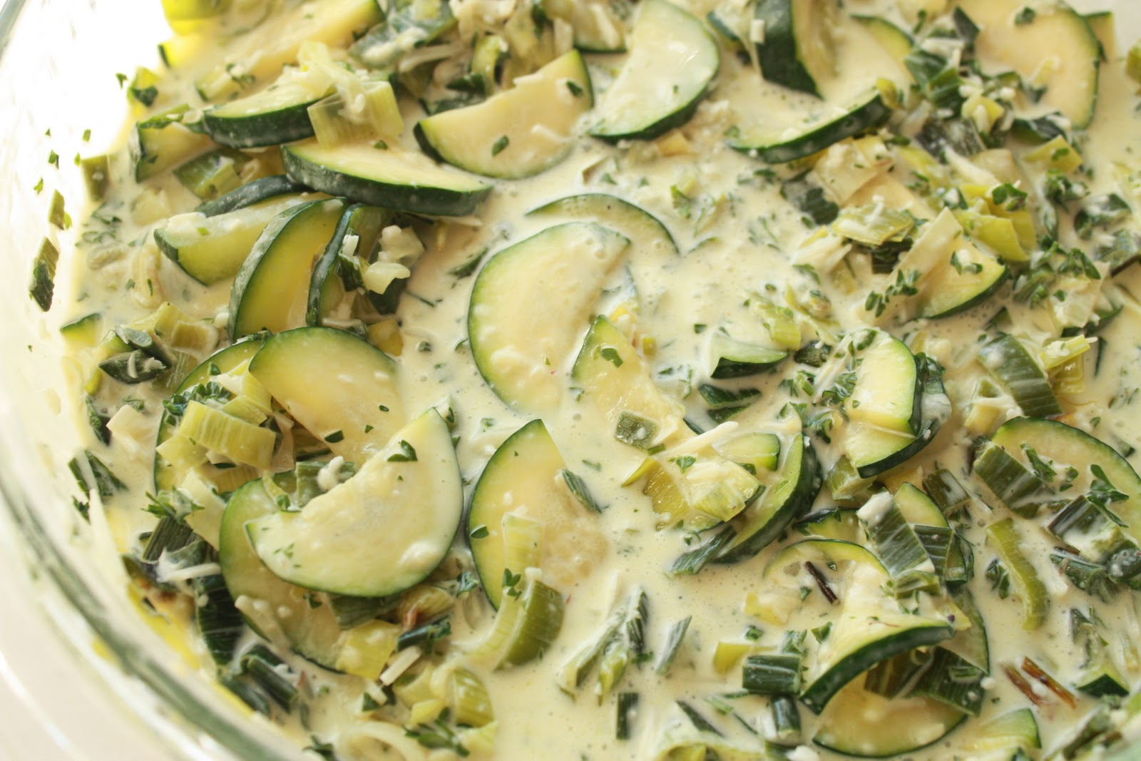 Slice and wash the leeks very well in cold water. Heat the oil in a large pan, add the leeks and cook until translucent (like you would with onions). Add the zucchini and cook on medium heat until tender, seasoning with salt and pepper. Add the parsley, and let cool. Mix the heavy cream with the eggs, add the cheese, and season with salt and pepper. Mix the cream mixture with the cooled vegetables and pour onto prepared tart shell. Prebake your crust on 425 degrees for 10-20 minutes. Allow to cool on wire rack. Fill with vegetable mixture and bake at 350 until set, about 40 minutes.