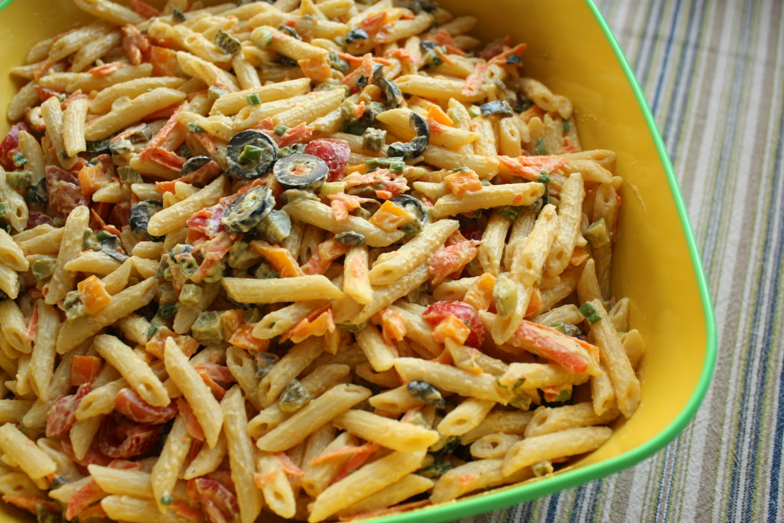 I know this isn’t exactly pasta salad weather, but I figured I’d post this anyways since I made it for J’s birthday party. You can mix it with a candy cane or use pumpkin pasta to make it season appropriate.